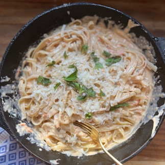 Add flour and mix well, cook for another 3 minutes. Slowly add in heavy cream and bring to a simmer.